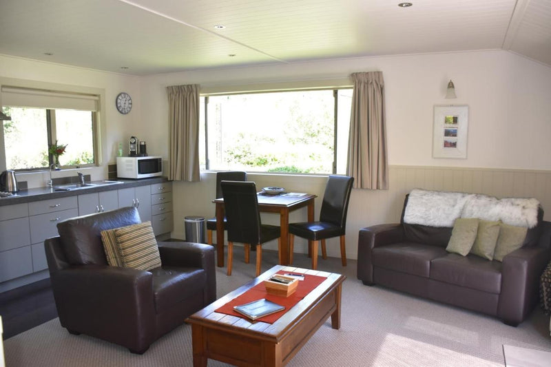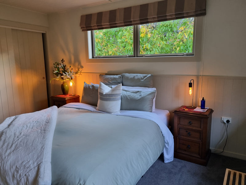 This cottage is decorated in calm, soothing shades which compliment the outdoors. Moonlight is a very private, restful cottage, surrounded by fruit trees and lavender, with views over lavender, tussock rock gardens and lawns towards tranquil rural scenes with a backdrop of the Pisa mountain range and big blue skies in summer. A gentle creek meanders past the cottage.
