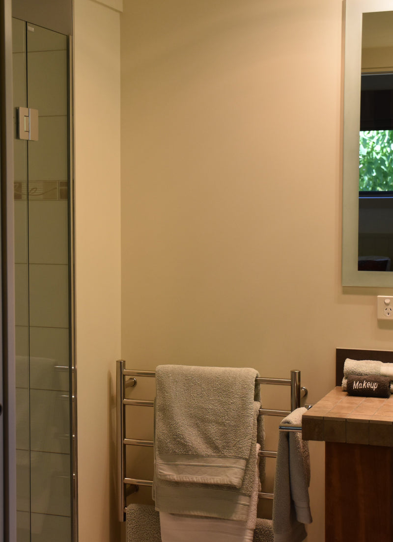 This Cottage has been designed for those with limited mobility, with thoughtful facilities and single level access. This cottage has a light, airy cottage with lovely garden, rural and mountain views. It is also suited to guests who need, or prefer, to sleep in separate beds. Celebration Cottage is an open plan style cottage with one king size bed and one king single bed, both side by side in the same sleeping area. Celebration Cottage has a carport attached to the cottage via a wooden deck area, both of which are on the same level, making easy access for those guests in a wheelchair or with walking difficulties. Please enquire direct if you are travelling with a child.