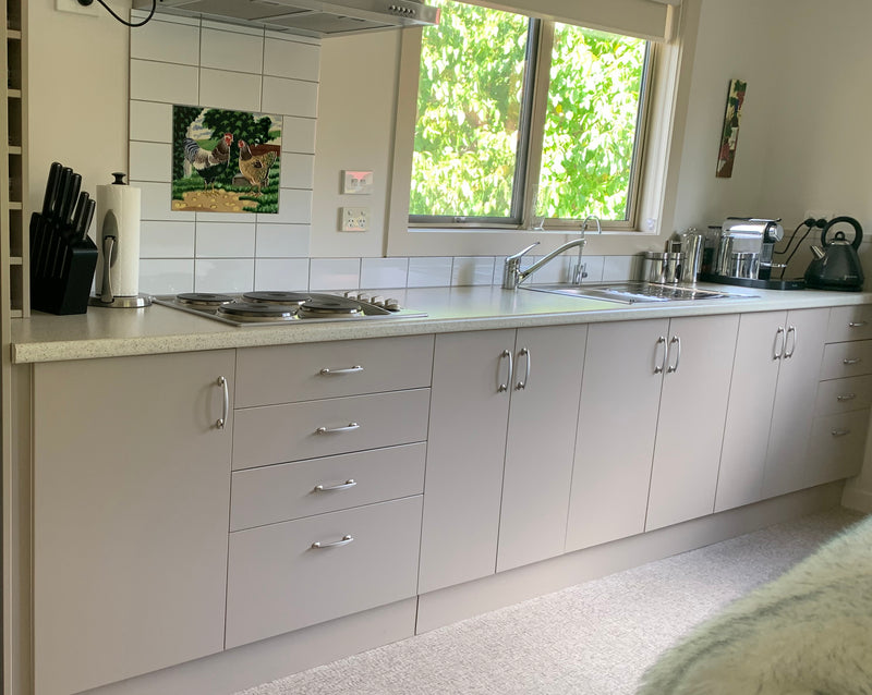 Continental Breakfast Hamper for two people: NZ$60.00 Includes homemade muesli, yoghurt and preserves, local juices and free range eggs with bacon, for guests to cook as they prefer in their well equipped kitchen. Delivered the evening before for your convenience.